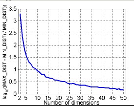 The curve indicates that the more we increase the number of dimensionality, the smaller the ratio is. In the modeling phase, it is important reduce dimensionality.