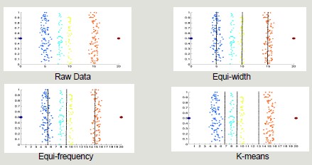 Unsupervised: equi-width, equi-frequency, K-means