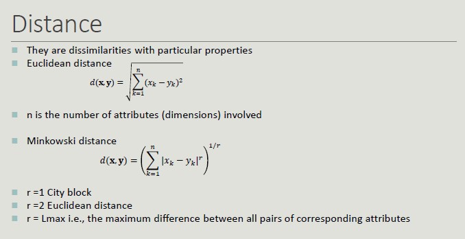 Dissimilarity (distance): it is a numerical measure expressing the degree of difference between two objects