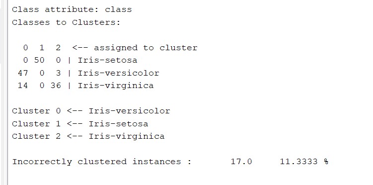 By running the analysis with class to cluster evaluation, clusters are created based on their size.