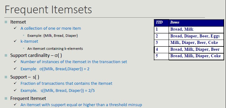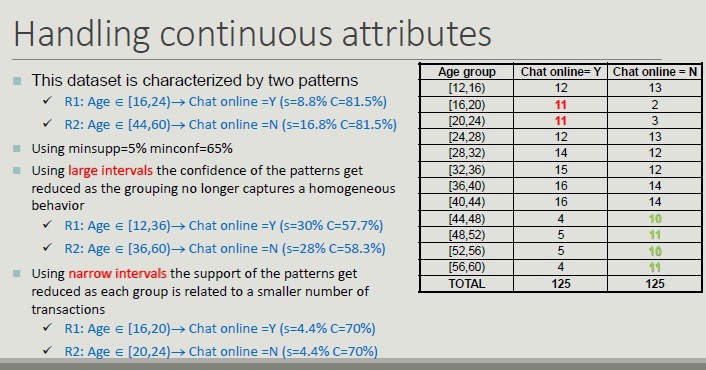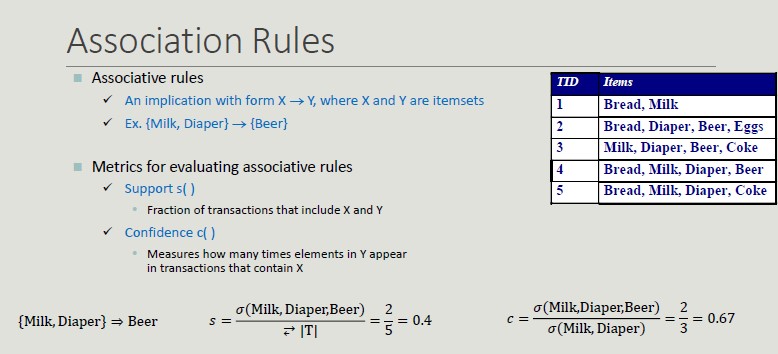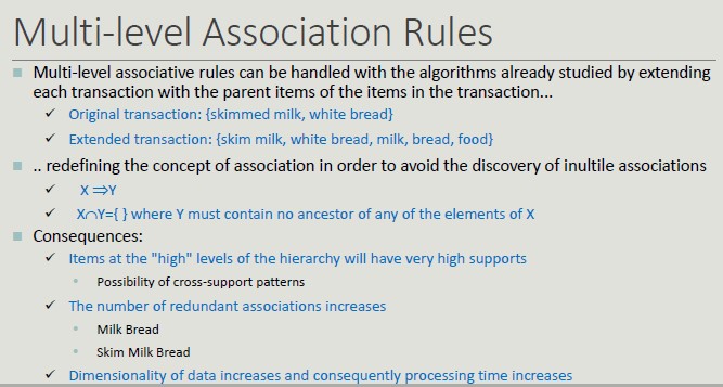 - Association rules (logical implications of the dataset)