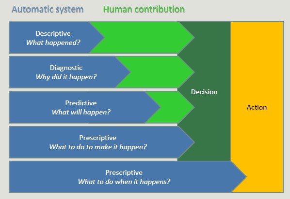 Prescriptive systems generate much value but it is extremely complex. Companies should start simple, adopting simple descriptive analytics solutions, and then move on. It is risky to skip intermediate steps.