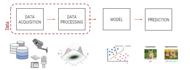The first step is to collect data in a data set. This step can be automated through artificial intelligence increasing the analytical power.